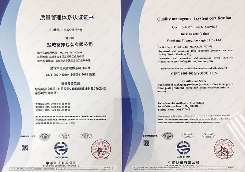 江鹽城富邦包裝有限公司創(chuàng)辦于2011年,地處環(huán)境優(yōu)美的鹽城大豐區(qū)三龍鎮(zhèn)工業(yè)集中區(qū),緊臨331省道和226省道,交通十分便利。是集研發(fā)、生產、經營為一體的中型私營企業(yè),主要生產各種規(guī)格內、外銷中高檔瓦楞紙箱、彩色印刷、封箱膠帶、紙托盤、珍珠棉、EPS(泡沫)成型、免模、大板裁片的專業(yè)工廠,年產瓦楞紙箱達400萬平方米、封箱膠帶260萬平方米、EPS泡沫10萬立方米以上。工廠占地8000平方米,生產廠房近3000平方米,擁有進口1020秋山四色膠印機,生產工藝先進,檢測手段齊全,品質服務保證,本公司已通過ISO9001:2015國際質量體系認證,并嚴格持續(xù)遵照體系認證及商檢部門要求組織生產和經驗管理。。。。。。 |